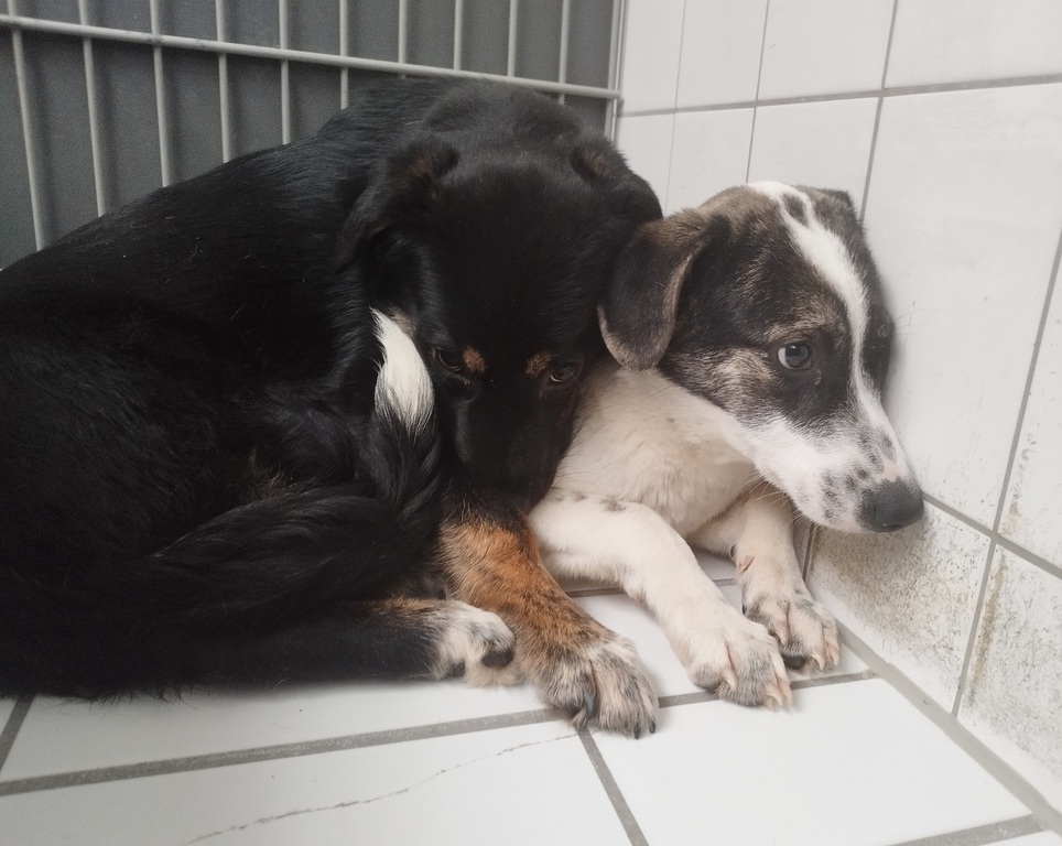 Paula und Shadow kamen zu uns, da sich der Besitzer nicht mehr um sie kümmern konnte. Paula ist eine aufgeschlossene Hündin, die auch von ihr unbekannten Personen, gerne gekuschelt wird. Shadow hingegen braucht etwas Zeit. Aber auch er ist, sobald er Vertrauen hat, super verschmust und genießt die Zeit mit seinen Menschen. Die beiden sind zusammen aufgewachsen. Da es hier aber vermehrt zu kleineren Auseinandersetzungen kam, haben wir uns dazu entschieden, sie auch getrennt voneinander zu vermitteln. Sie kennen die Grundkommandos und sind leinenführig. Andere Tiere sollten nicht im zukünftigen Zuhause wohnen.